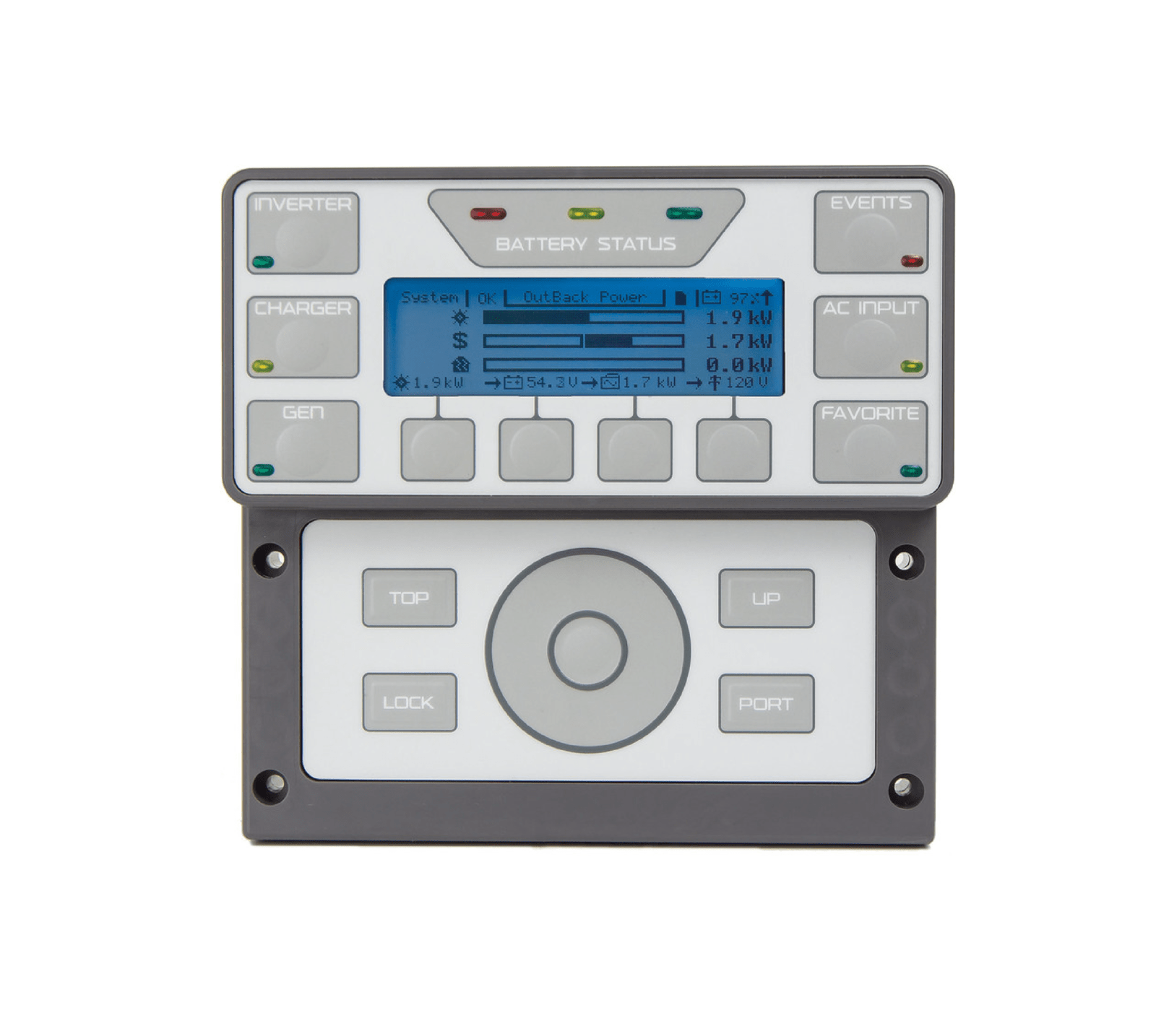 Designed for UL 1741 SA compliance, the MATE3s System Display and Controller makes it easier than ever to program and monitor a complete OutBack Power system. The MATE3s keeps the same intuitive user interface and integrated system configuration wizard found in the MATE3 to make system setup and programming quick and seamless. The ability to set unique multi-level user passwords makes it possible to secure critical system settings from unintended changes while still allowing open access to necessary functions. The MATE3s can also connect to the OPTICS RE servers for remote monitoring and control.